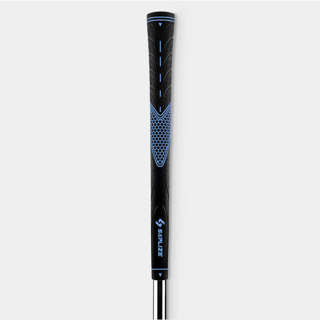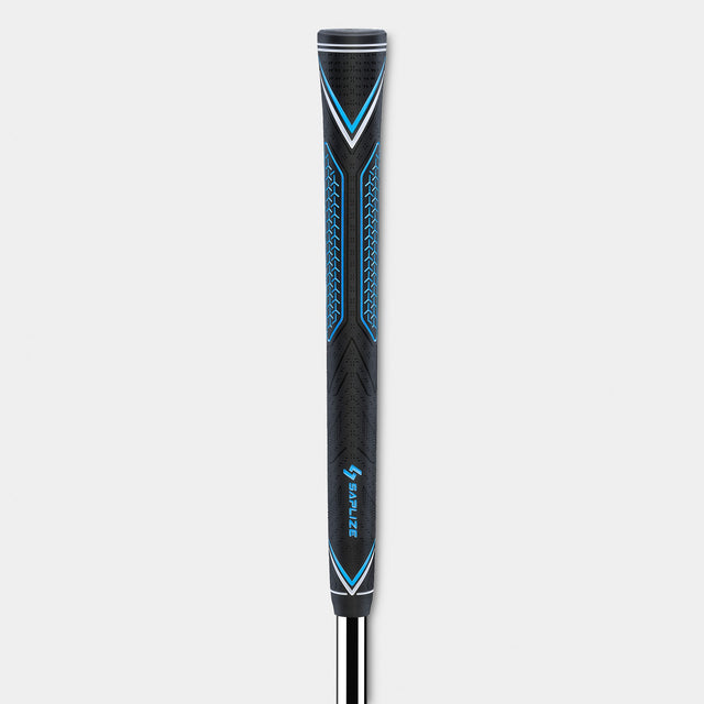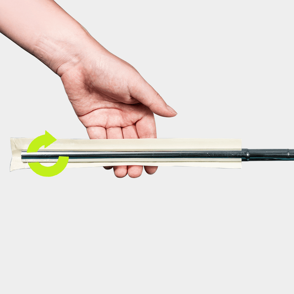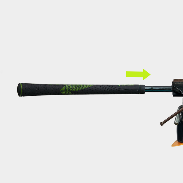 Using one fluid motion, slide the grip onto the shaft. If you prefer the logo facing down, rotate the grip 180 degrees before sliding it onto the shaft.